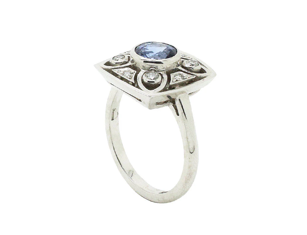 - Pierre : Saphir ~0,90 ct + diamants ~0,10 ct au total