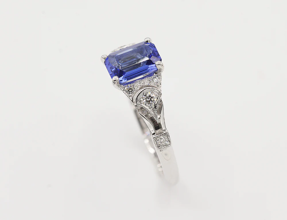 Solitaire Création Benoit Joaillier "Tanzanite Taille Emeraude" et Diamants